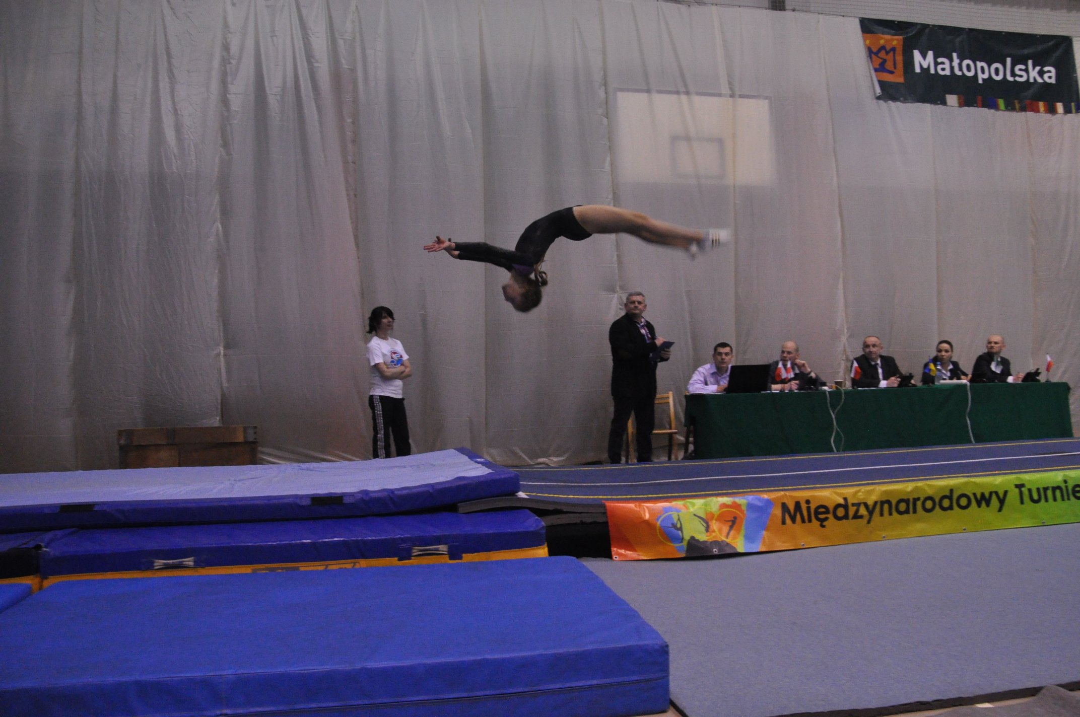 Grupa zawodników trenująca do pięciu razy w tygodniu. Zawodnicy trenują ćwiczenia zespołowe na planszy, skoki na ścieżce i trampolinie. Przygotowują swoje umiejętności do poziomu wymaganego na zawodach oraz biorą udział w zgrupowaniach szkoleniowych.